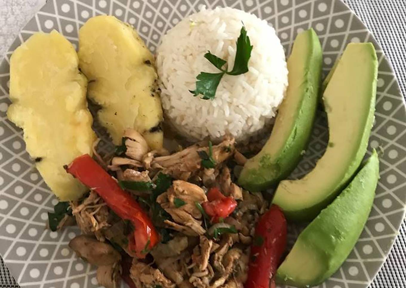 - Emplatas. Arroz, Papas y el pollito. Lo acompañas con la ensalada de tu elección.
