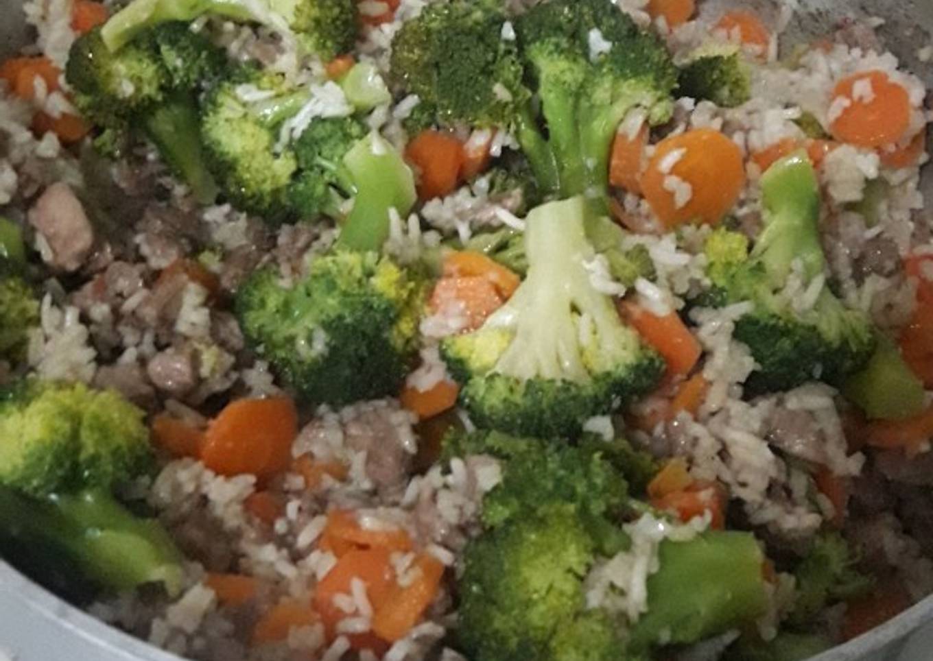 - Cuando ya este cocida la carne integra el arroz sin revolver demasiado