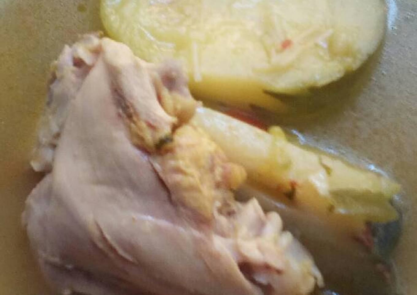 - Corta en pedazos medianos o a lo largo los güicoyes, el güisquil, la zanahoria y el apio. Y el chile pimiento lo cortas en cuadritos pequeños o en tiras y lo agregas a la olla. Puedes añadir pedazos de pollo o en trozos. Lo agregasjunto con la verdura para que se cuezan igual.