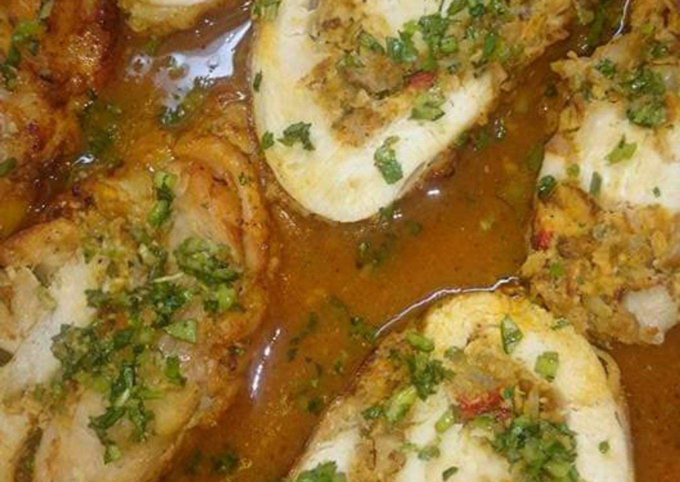 Medallones de pavo rellenos y su salsa criolla