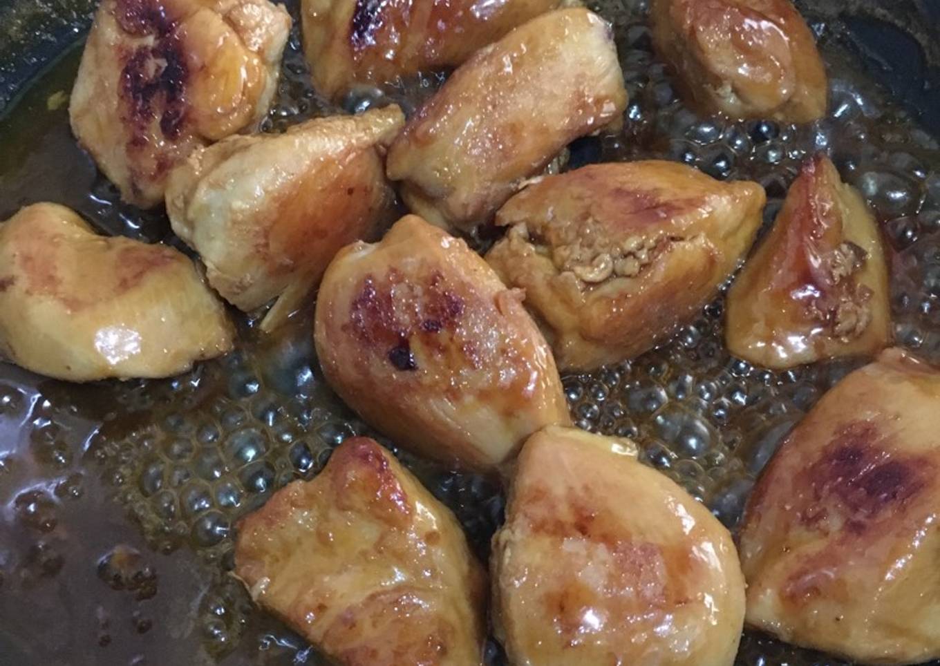 - Una vez que el pollo este dorado, agrega el jugo de naranja hasta que quede cubierto todo el pollo o hasta la mitad